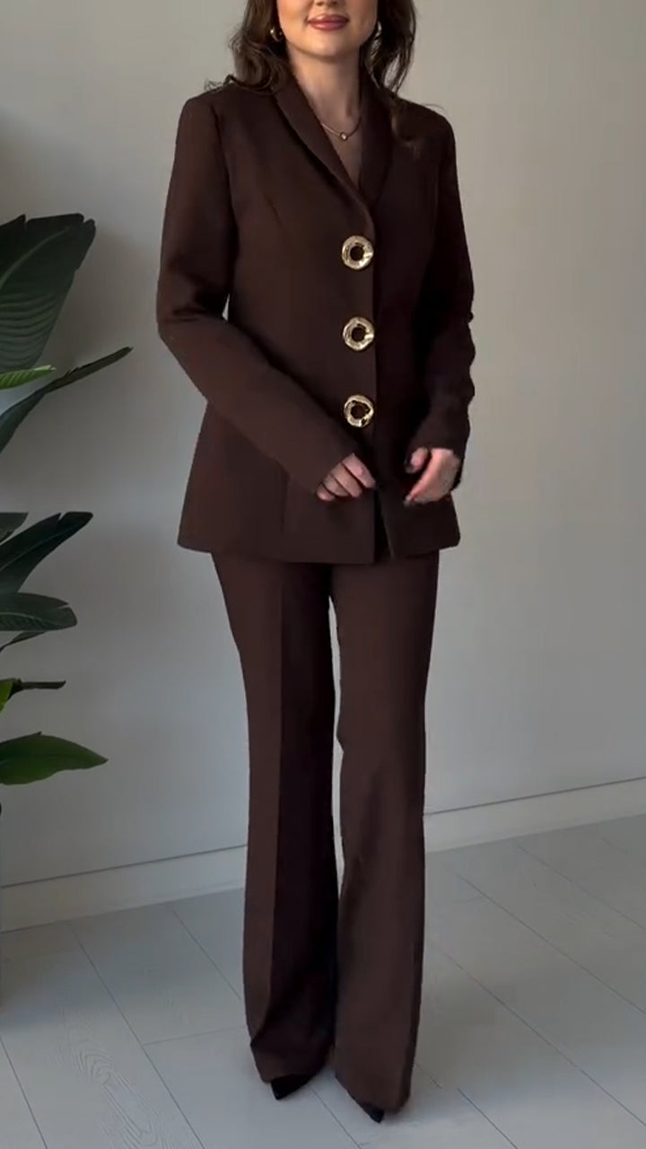 Αυτό το καθημερινό σετ δύο τεμαχίων έχει σχεδιαστεί με μια κομψή, δομημένη σιλουέτα που προσφέρει μια εκλεπτυσμένη αίσθηση στο καθημερινό στυλ. Με συντονισμένη ραφή και καθαρές γραμμές, προσφέρει μια συγκροτημένη εμφάνιση που μεταβαίνει ομαλά από τις ημερήσιες δραστηριότητες σε βραδινές περιστάσεις.