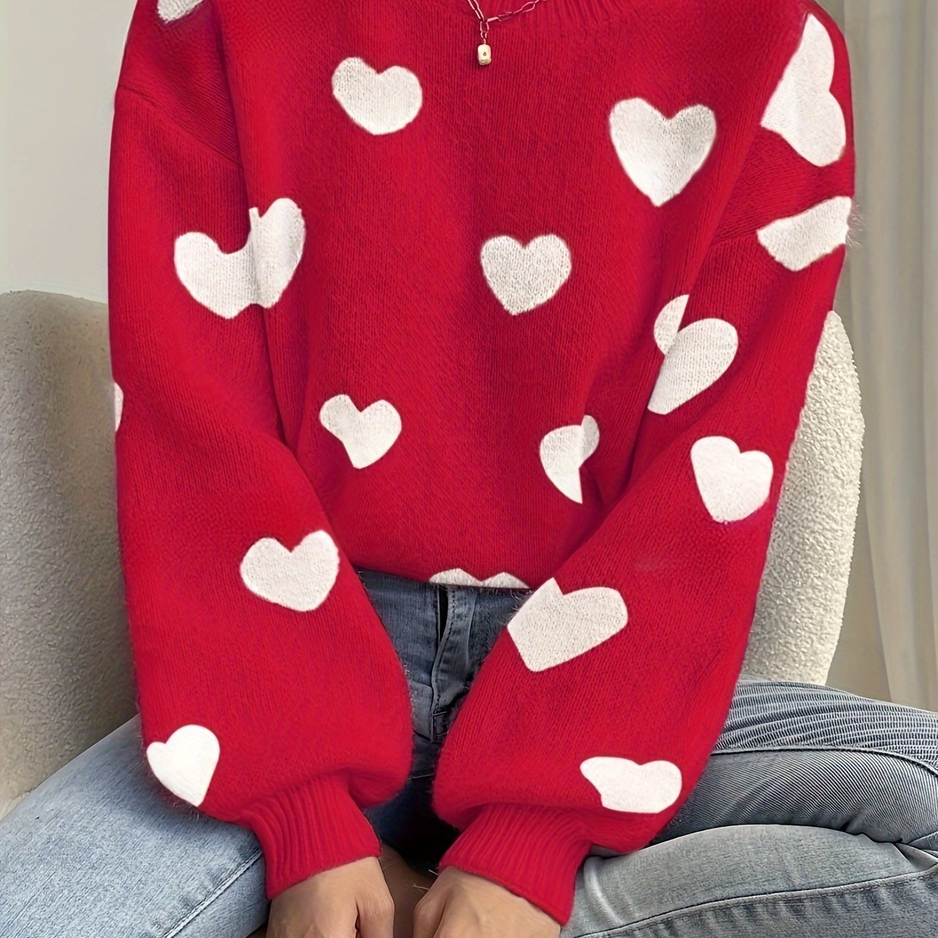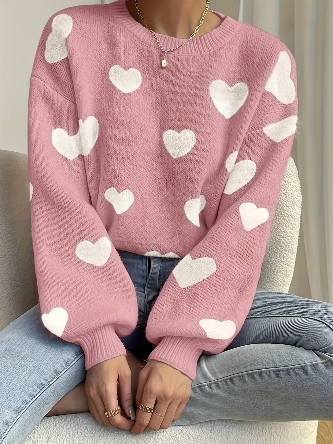 Το πουλόβερ μας με μοτίβο καρδιών σε όλη την επιφάνεια ενώνει τον παιχνιδιάρικο χαρακτήρα με την ανεπιτήδευτη κομψότητα. Η χαλαρή σιλουέτα αγκαλιάζει το σώμα χωρίς να το πιέζει, ενώ η απαλή, φιλική στο δέρμα πλέξη και τα προσεγμένα ριμπ τελειώματα προσφέρουν άνεση και άψογο κράτημα. Η κλασική λαιμόκοψη το κάνει ιδανικό τόσο για layering όσο και για αυτόνομες εμφανίσεις.